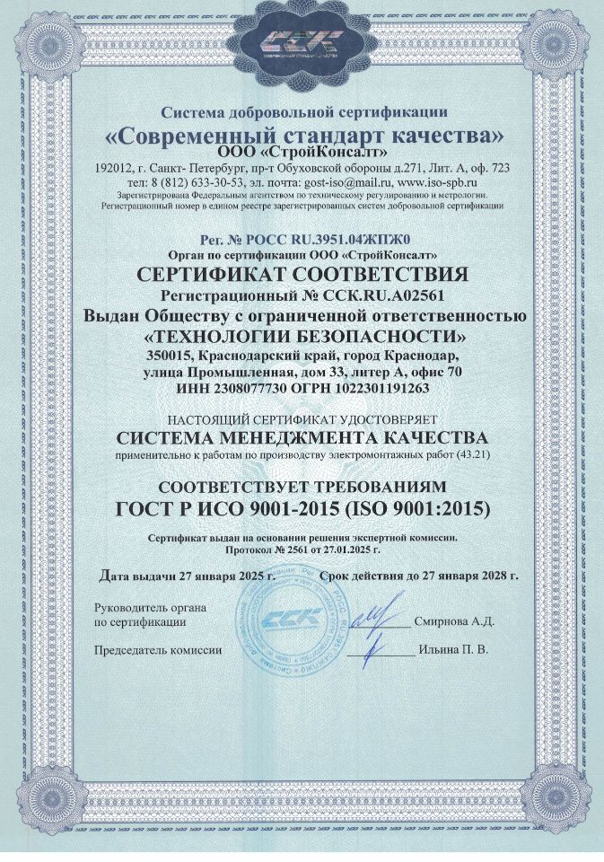 Компания ООО "Технологии безопасности" с 2001 г специализируется на проектировании систем противопожарной защиты СППЗ и монтаже и техническом обслуживании систем безопасности, включая охранно-пожарную сигнализацию, видеонаблюдение и системы контроля доступа СКУД. Разработка проектной документации выполняется для проектируемых объектов для прохождения госэкспертизы на основании допуска СРО РОПК - раздел 9 МОПБ (все пункты раздела) и аттестации проектировщиков для выполнения проектных работ на существующих объектах. Наша команда состоит из высококвалифицированных профессионалов, которые не раз подтверждали свою компетентность в данной области. Мы гордимся тем, что имеем все необходимые лицензии и допуски для осуществления проектной и монтажной деятельности, что гарантирует надежность и качество наших услуг. Доверьте безопасность вашего объекта экспертам!